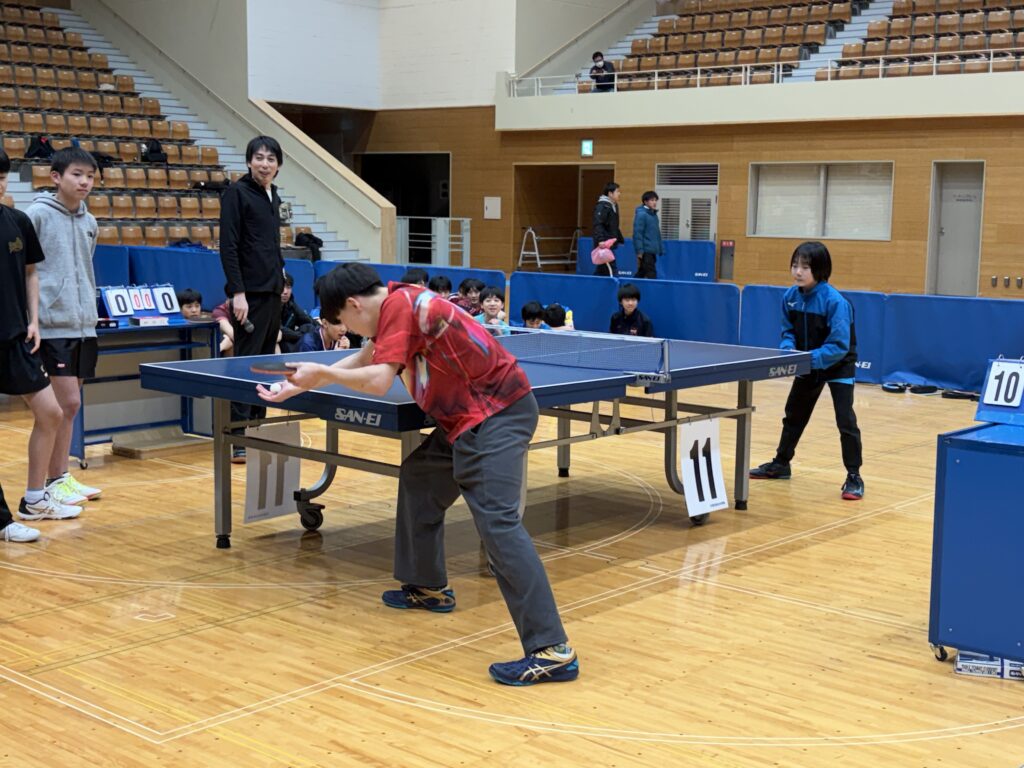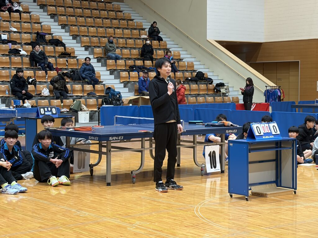 試合終了後は、本校の外部コーチである白神俊佑氏(中央大学男子卓球部監督)による講習会が行われました。